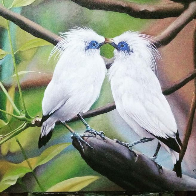 Gambar lukisan tidak ada hentinya untuk selalu memberikan gambar keindahan kepada seluruh makhluk hidupSelain menyediakan berbagai kebutuhan seperti makanan air dan oksigen alam juga menyuguhkan gambar lukisan yang sangat memanjakan mata. 50 Lukisan Burung Jalak Bali Gambar Lukisan. Antara lain mempunyai bulu yang putih pada seluruh tubuhnya.